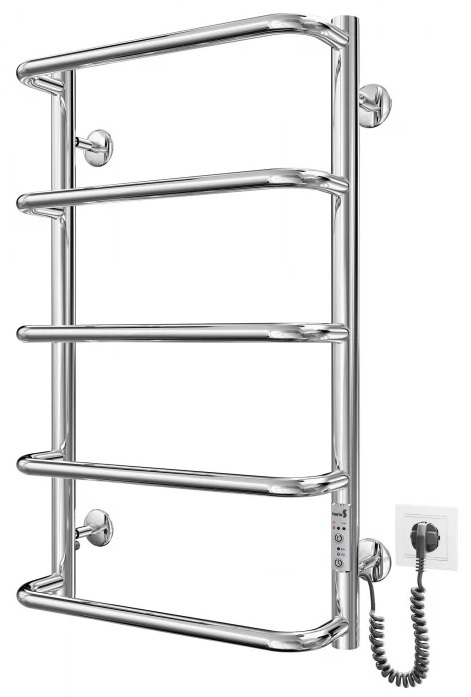 Електросушарка для рушників побутова Стандарт НР-І 650х430/150 TR К. Обладнана таймер-регулятором та конектором для підключення в розетку з будь-якого боку. Сумісна з комплектом прихованого підключення. Має 5 ребер та стояки з круглої труби.