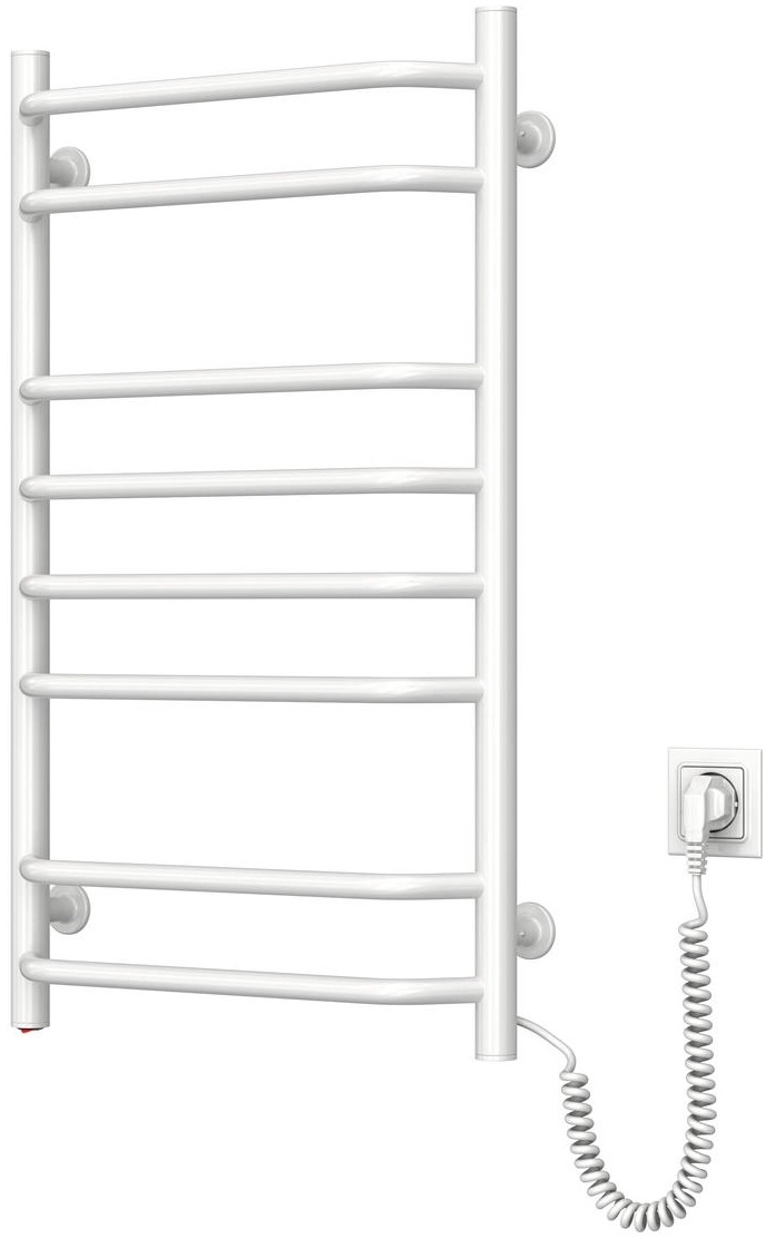 Електрична рушникосушка Navin Блюз 800×480 мм з правим підключенням, виготовлена з фарбованої сталі. Має 8 секцій, потужність 142 Вт, ступінь захисту IP44. Максимальна температура – 55°C. Без терморегулятора, кріпиться стаціонарно.