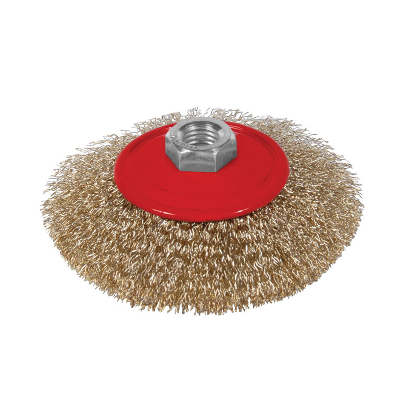 Опис Щітка проволочна конусоподібна 75мм М14*2мм (латуньована) SIGMA (9016071) код товару 9016071