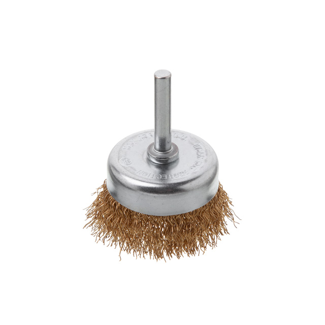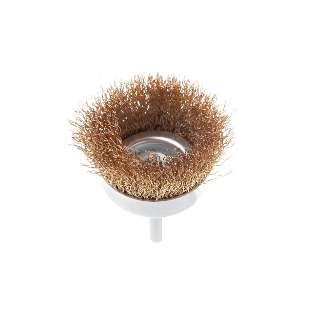 Опис Щітка чашкова, 50 мм, 1/4", кручений дріт покритий латунню, для дриля, 4500 об/хв код товару BT-9051