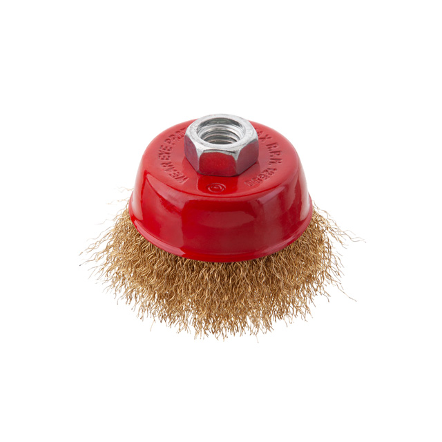 Опис Щітка чашкова, 85 мм, M14, кручений дріт покритий латунню, для КШМ, 8500 об/хв код товару BT-1086