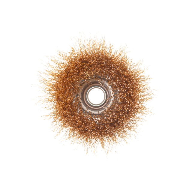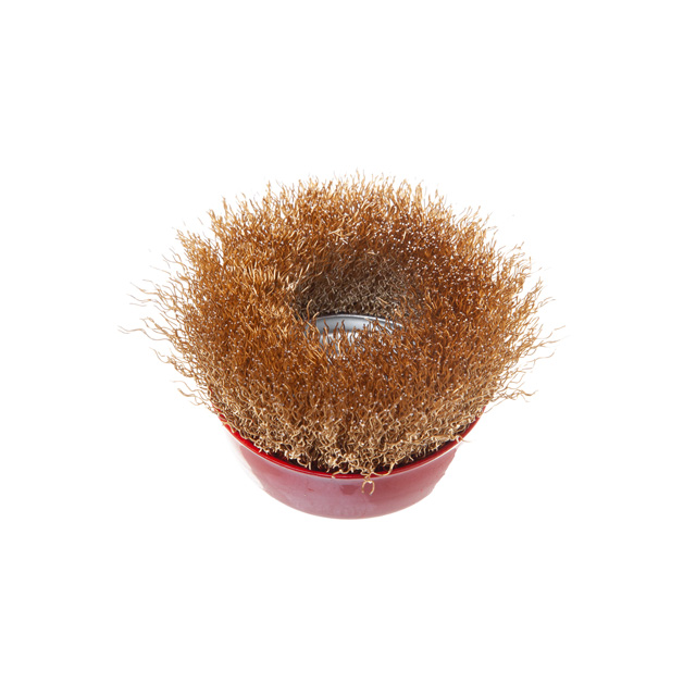 Характеристики Щітка чашкова, 85 мм, M14, кручений дріт покритий латунню, для КШМ, 8500 об/хв код товару BT-1086