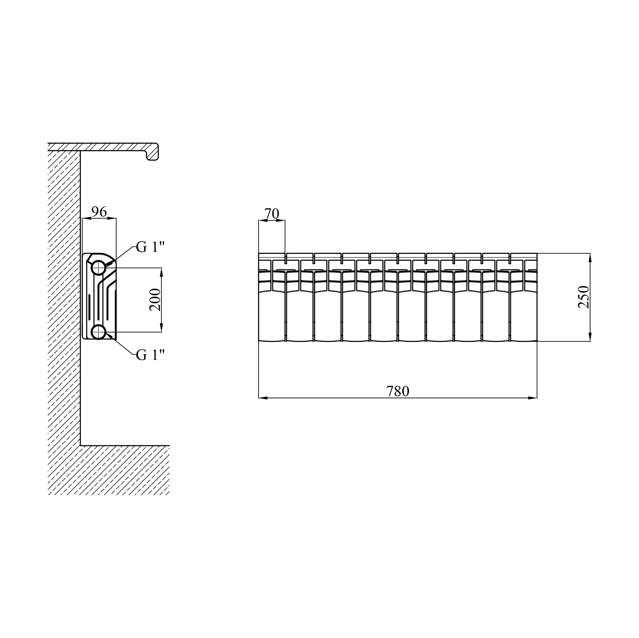 Характеристики Секции биметаллического радиатора Kroner Alma 200М 200х80х96 мм код товару CV034116