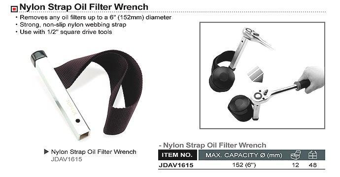 Знімач TOPTUL JDAV1615 - це інструмент, який не підведе. Нейлонова стрічка, що обертається, дозволяє легко знімати фільтри, не пошкоджуючи їх. Діаметр 152 мм підходить для більшості автомобільних фільтрів. Відчуй, як зручно працювати з надійним інструментом. Не витрачай час на складні рішення - просто обери TOPTUL. Відчуй різницю, коли якість говорить сама за себе. Час - це гроші, а з цим знімачем ти їх заощадиш.