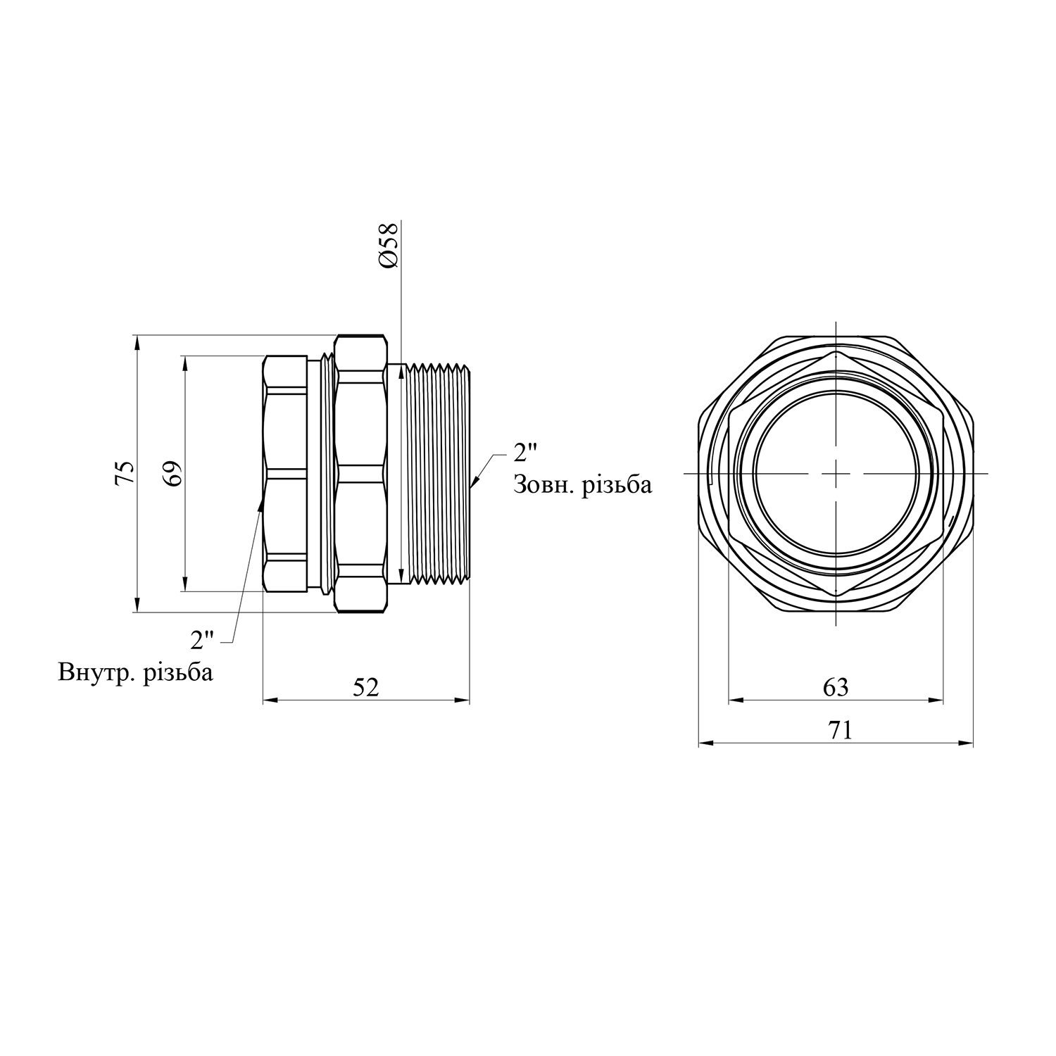Характеристики Сгон-американка пряма STA 2 ВН латунна код товару CV013160