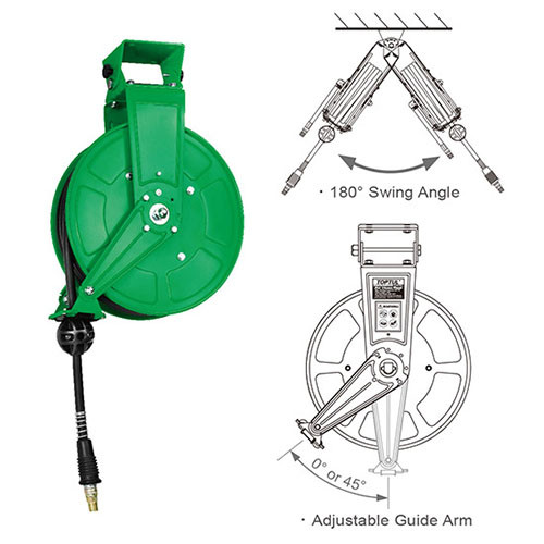 Опис Шланг повітряний на котушці (подовжувач пневматичний) 20 атм 9,5x16 мм, 15 м TOPTUL KHBR1015 код товару KHBR1015