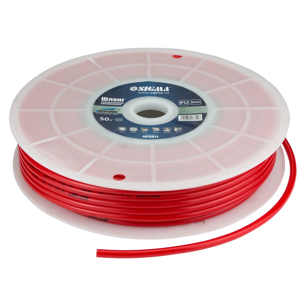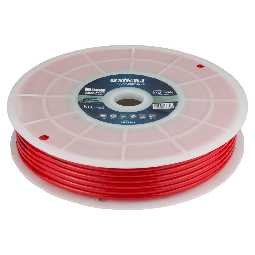 Характеристики Шланг в бухті поліуретановий (PU) армований 50м 5.5×8мм REFINE (7013611) код товару 7013611