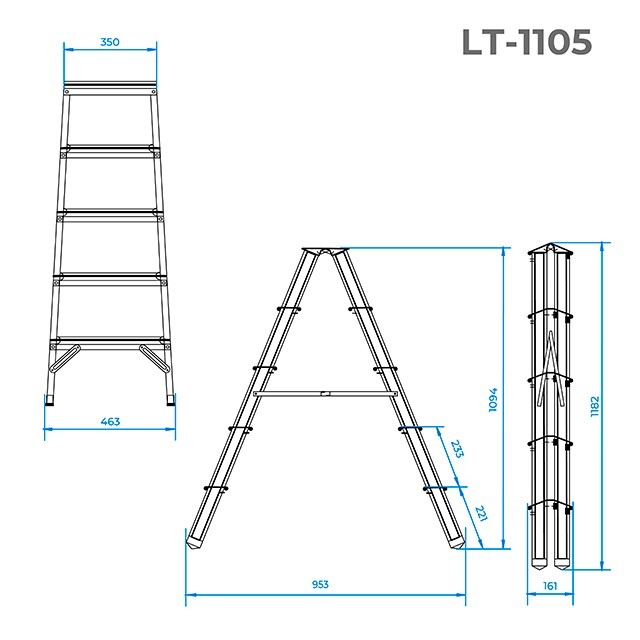 Опис Стремянка алюмінієва двостороння 5 ступенів, висота 1094 мм INTERTOOL LT-1105 код товару LT-1105