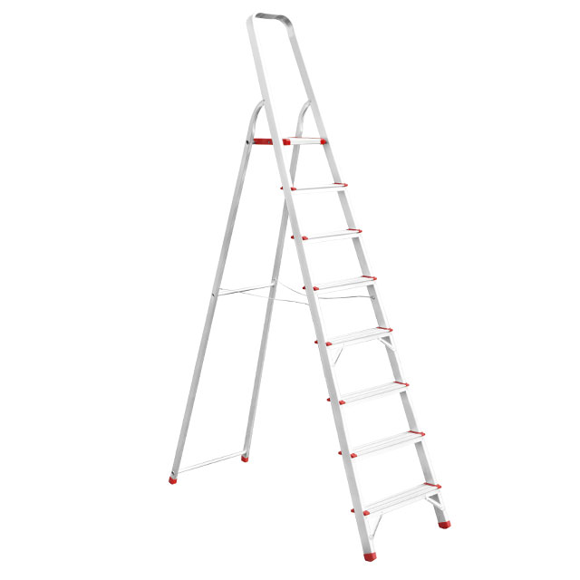 Опис Стремянка алюмінієва 8 ступенів, висота до платформи 1720 мм INTERTOOL LT-1008 код товару LT-1008