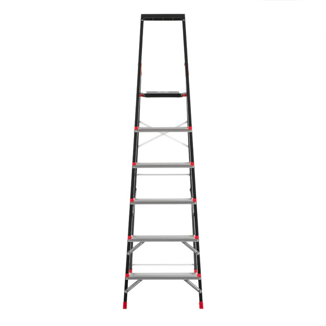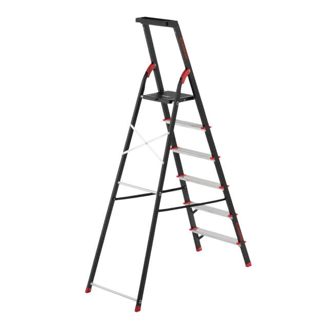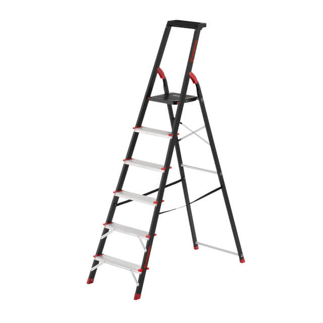 Опис Стремянка INTERTOOL LT-0056 6 ступеней, стальний профіль, висота верхньої ступені 1280 мм, 150 кг код товару LT-0056