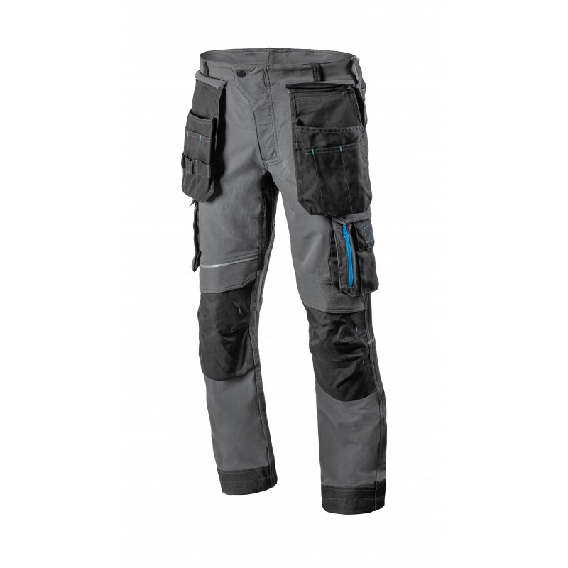 Професійні чоловічі захисні штани TAUBER виготовлені із високоякісних матеріалів. Міцне плетіння забезпечує підвищену зносостійкість. Стандарт 4-way stretch підвищує еластичність штанів, що забезпечує більшу свободу рухів для власника Використовувані світловідбиваючі деталі сприяють більш безпечній роботі в темне час доби. Велика кількість кишень підвищує зручність використання продукту та дає впевненість у тому, що інструменти завжди будуть під рукою. У кишенях та на колінах використані посилення CORDURA. Додатковий закритий кишеня надійно застібається на блискавку, щоб нічого не висунулося та не пошкодилося. Вони регулюються за допомогою внутрішньої гумки в середині пояса. Штани доступні в модному темно-сірому кольорі з синіми вставками та широкому діапазон розмірів (від S до 3XL). Вони були створені для професіоналів. Ідеально підходять для виробничих робітників, будівельників, працівників транспорту та автомеханіків. Вони ідеально підходять для сервісних, монтажних та технічних робіт.