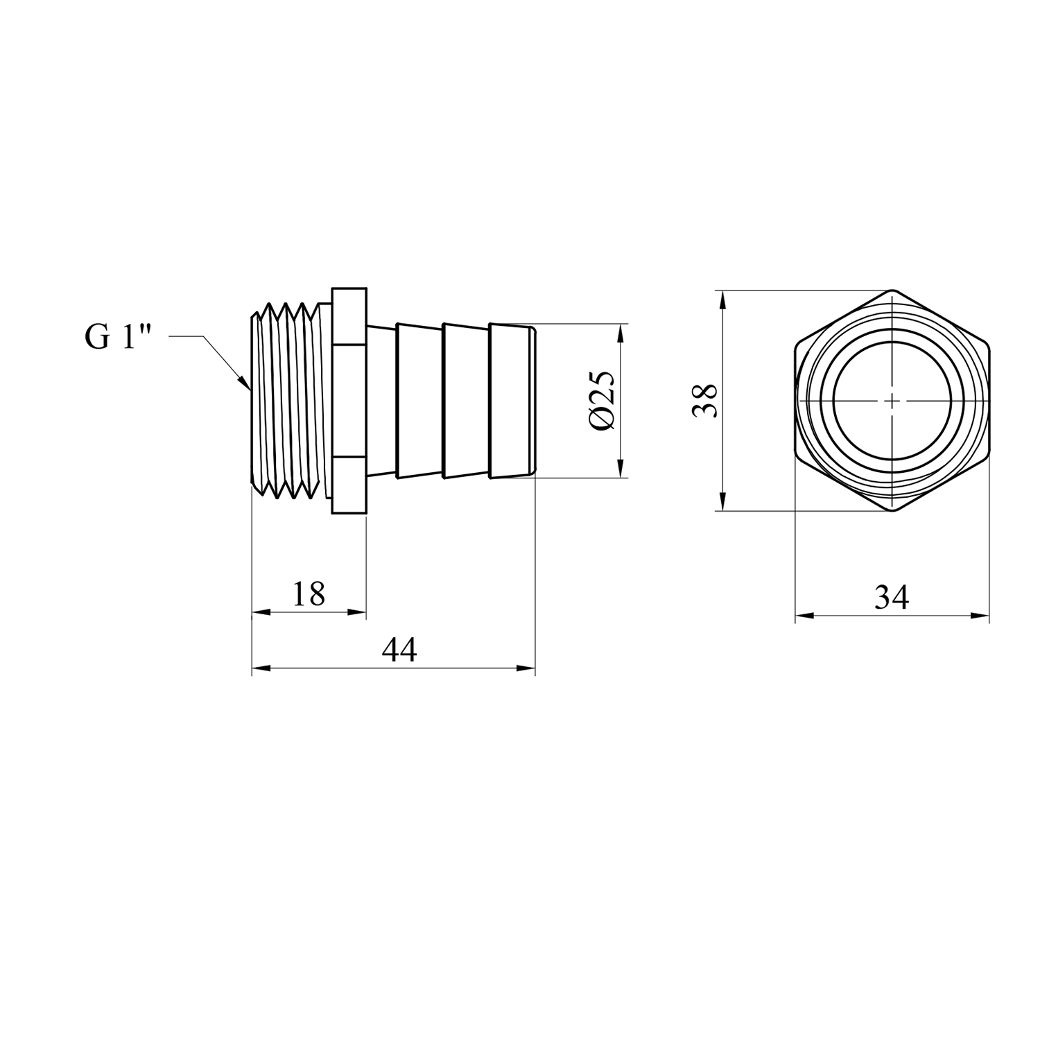 Опис Штуцер LexLine 1 РН, D=25 мм латунний УК0010-1 код товару CV029110