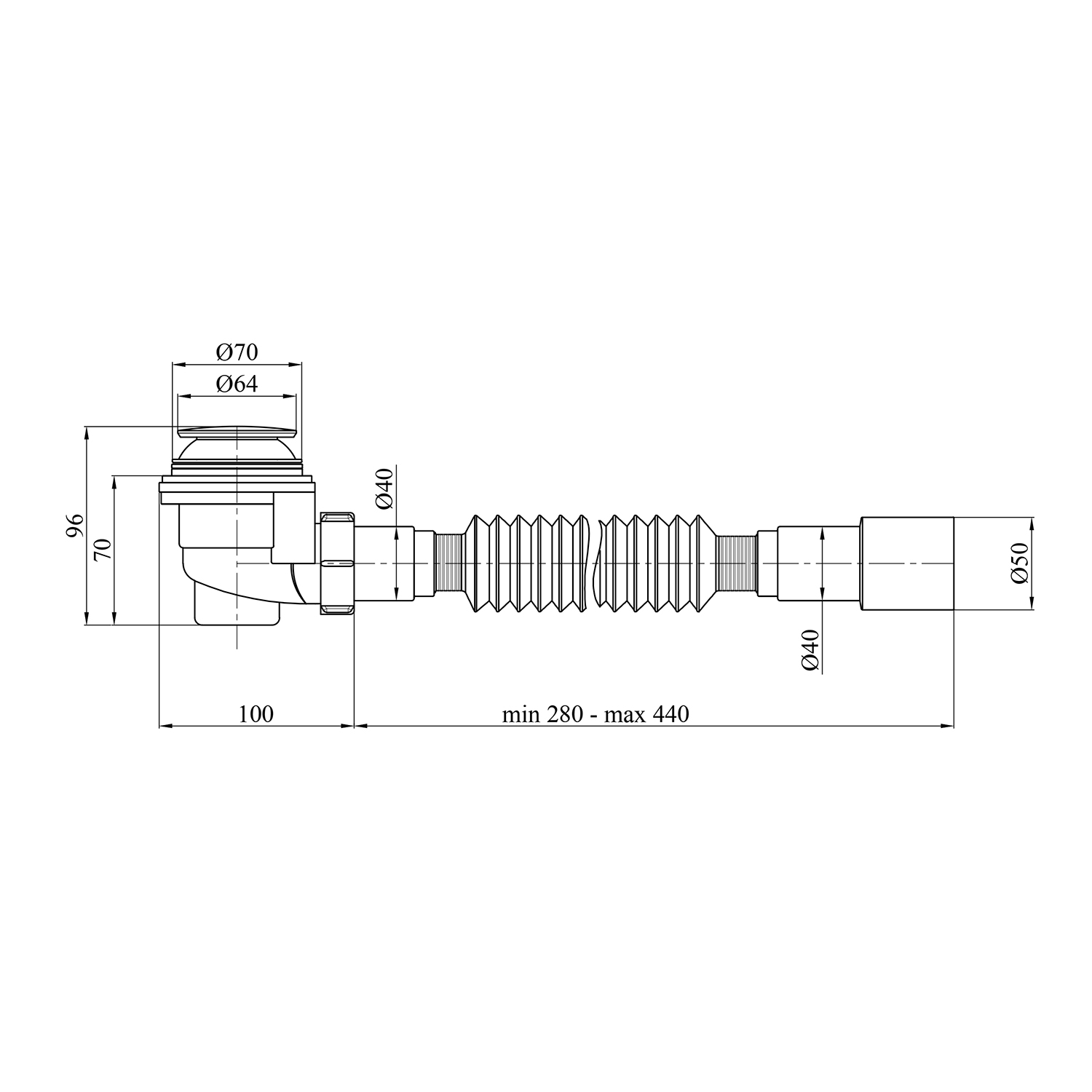 Опис Сифон для душевого поддона Kroner KRP - ST08 1 1/2x60, D-64 з системою СІск-СІас, з гнучкою трубкою 40/50 мм код товару CV032071