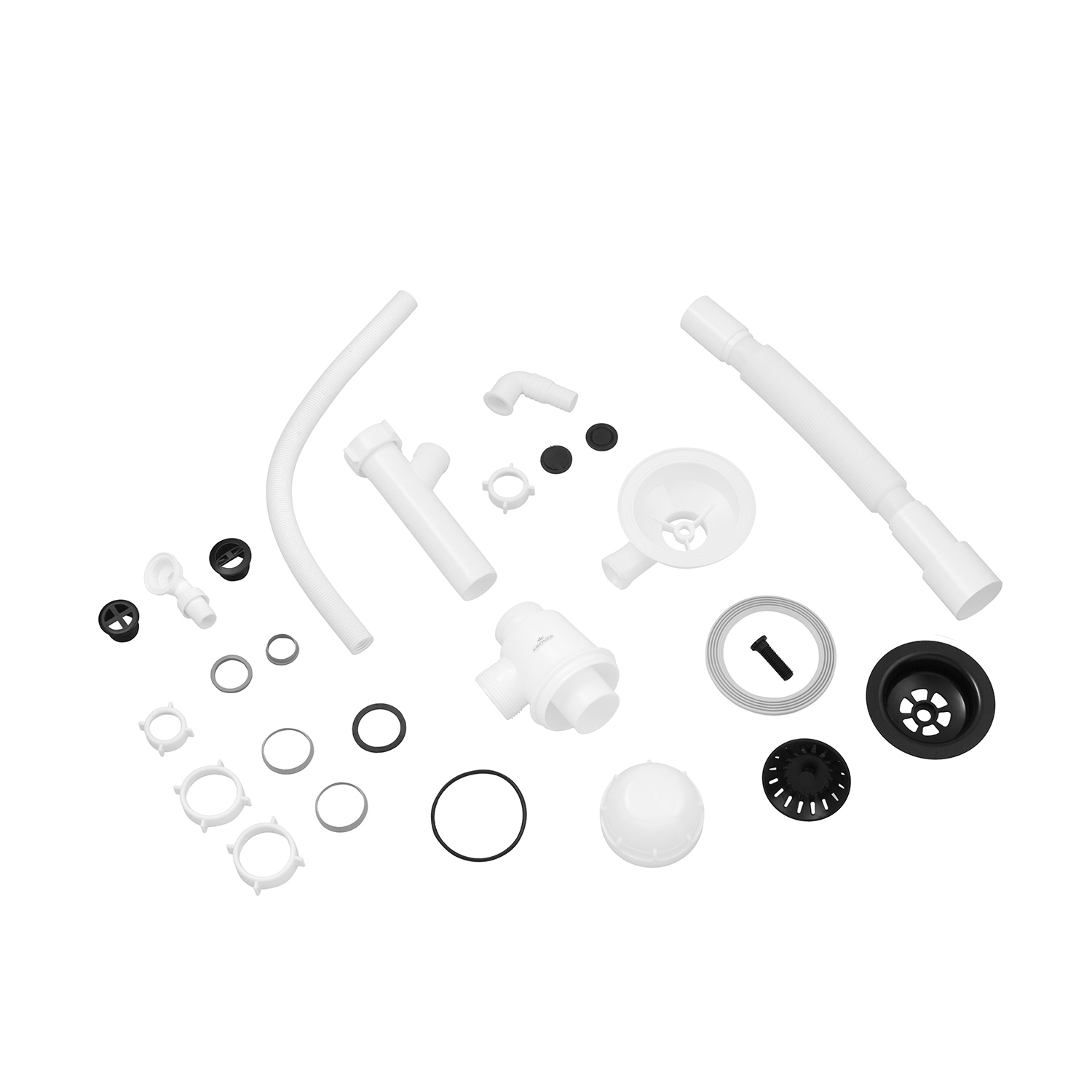Опис Сифон для кухонной мойки Kroner KRP KS02R-1BLK 3 1/2"х40/50 мм с отводом для стиральной машины, с круглым переливом код товару CV034317