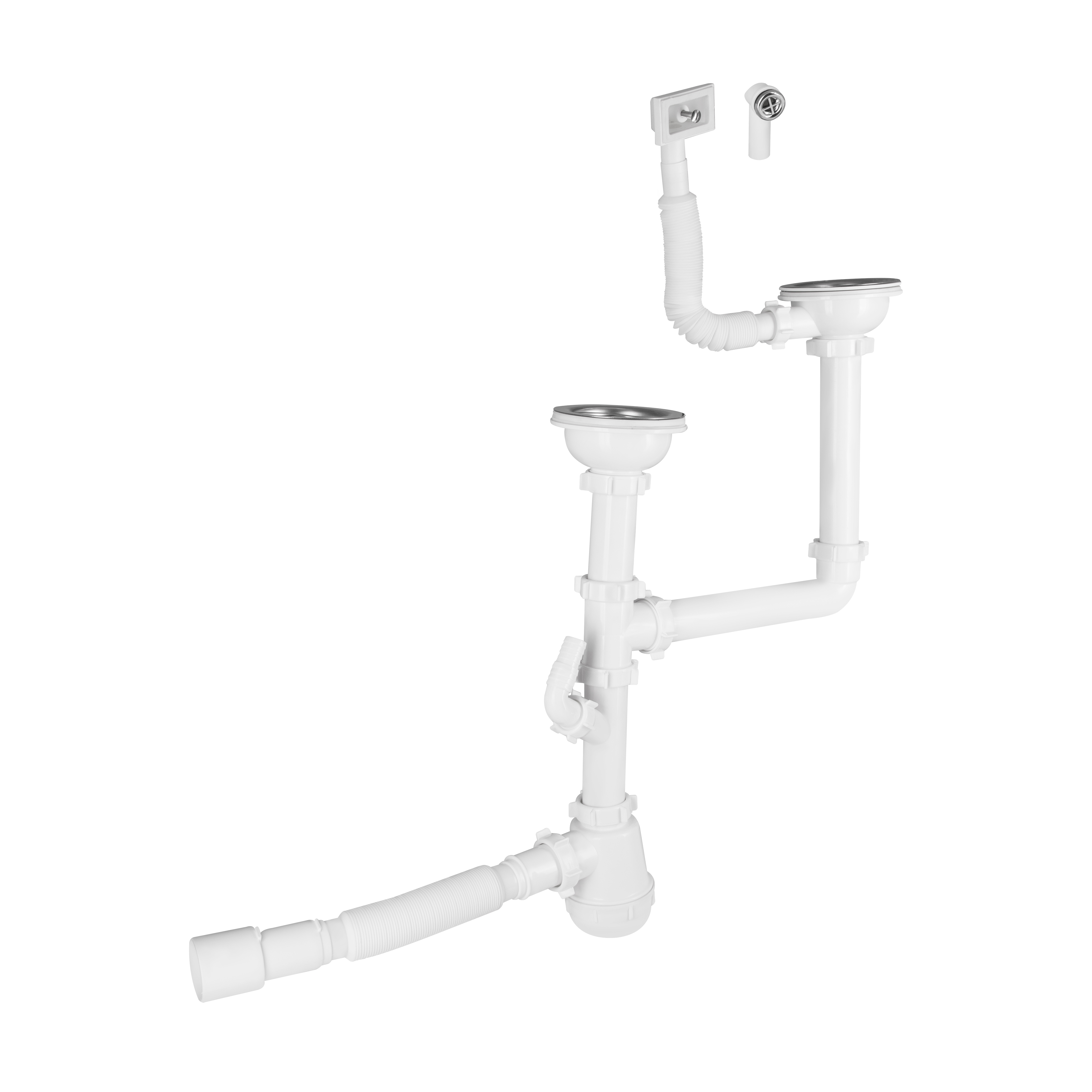 Характеристики Сифон подвійний для кухонної мийки Lidz (WHI) 60 05 M003 00 з відведенням для пральної машини (вихід 50 мм) код товару SD00042775