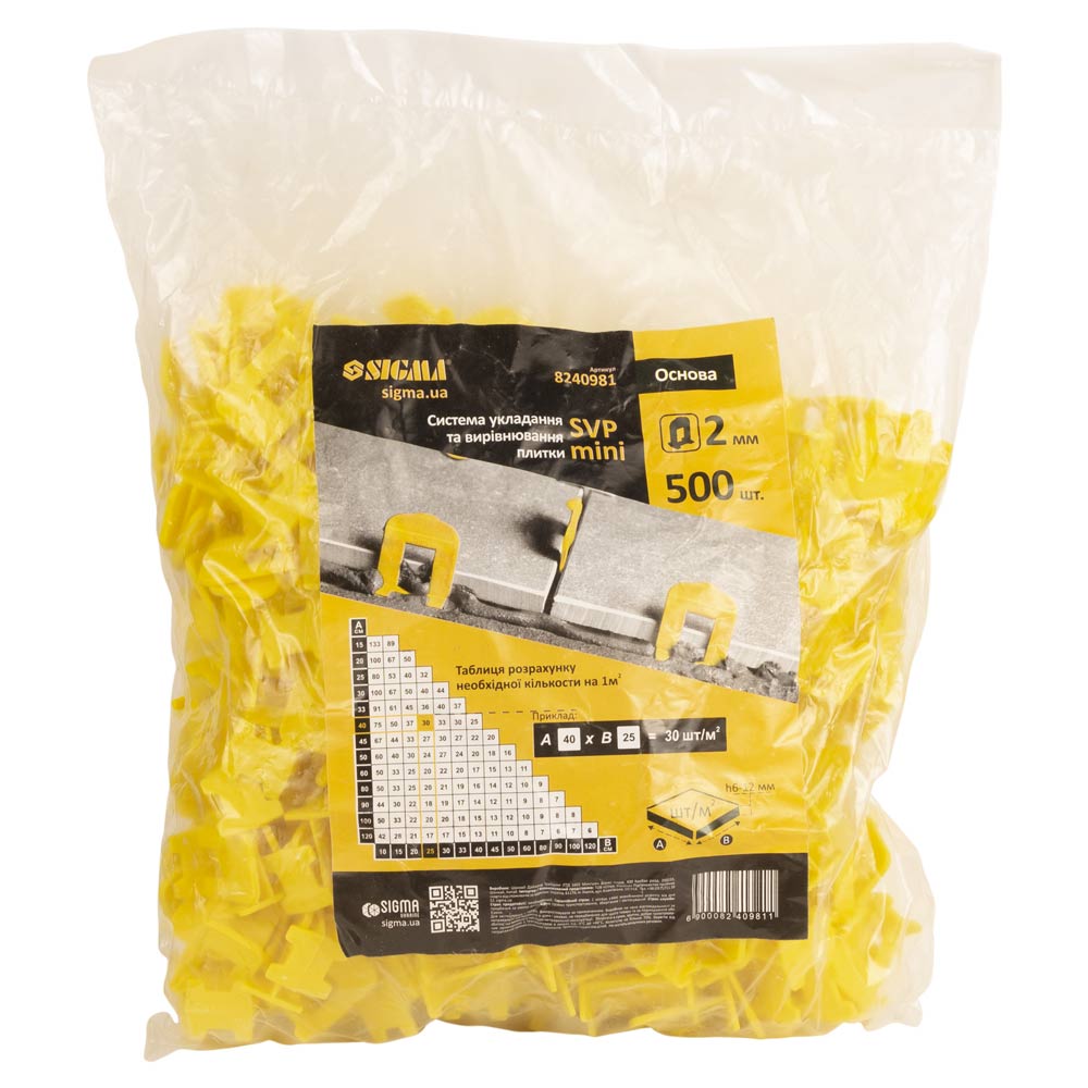 Опис Система укладки і вирівнювання плитки SVP Mini основа 2.0 мм 500шт SIGMA (8240981) код товару 8240981