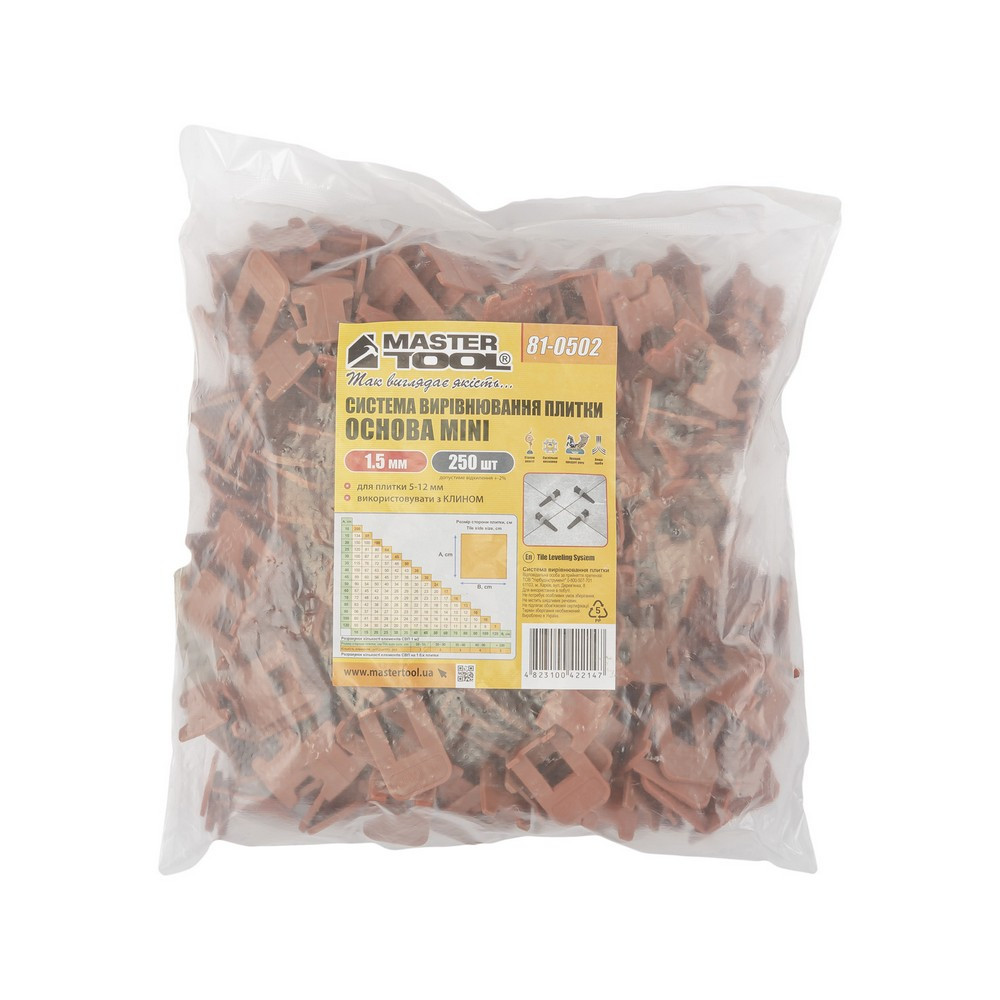 Система вирівнювання плитки MASTERTOOL ОСНОВА MINI 1.5 мм набір 250 шт 81-0502