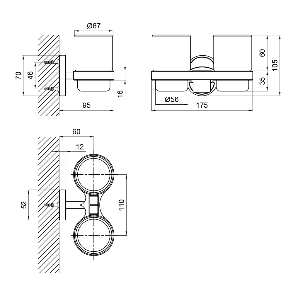 Характеристики Стакан подвійний Lidz (CRG) 114.04.02 з тримачем для зубних щіток код товару SD00028261