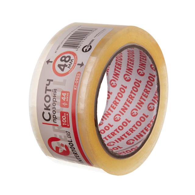 Опис Скотч прозорий 48мм*100м*52мкм INTERTOOL KT-0903 код товару KT-0903