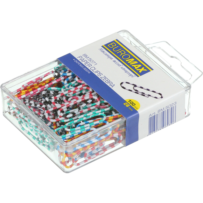 Опис Скріпки кольорові ЗЕБРА, 28мм, 100 шт.в пласт.упаковці 28 мм (Im-off) код товару BM.5071