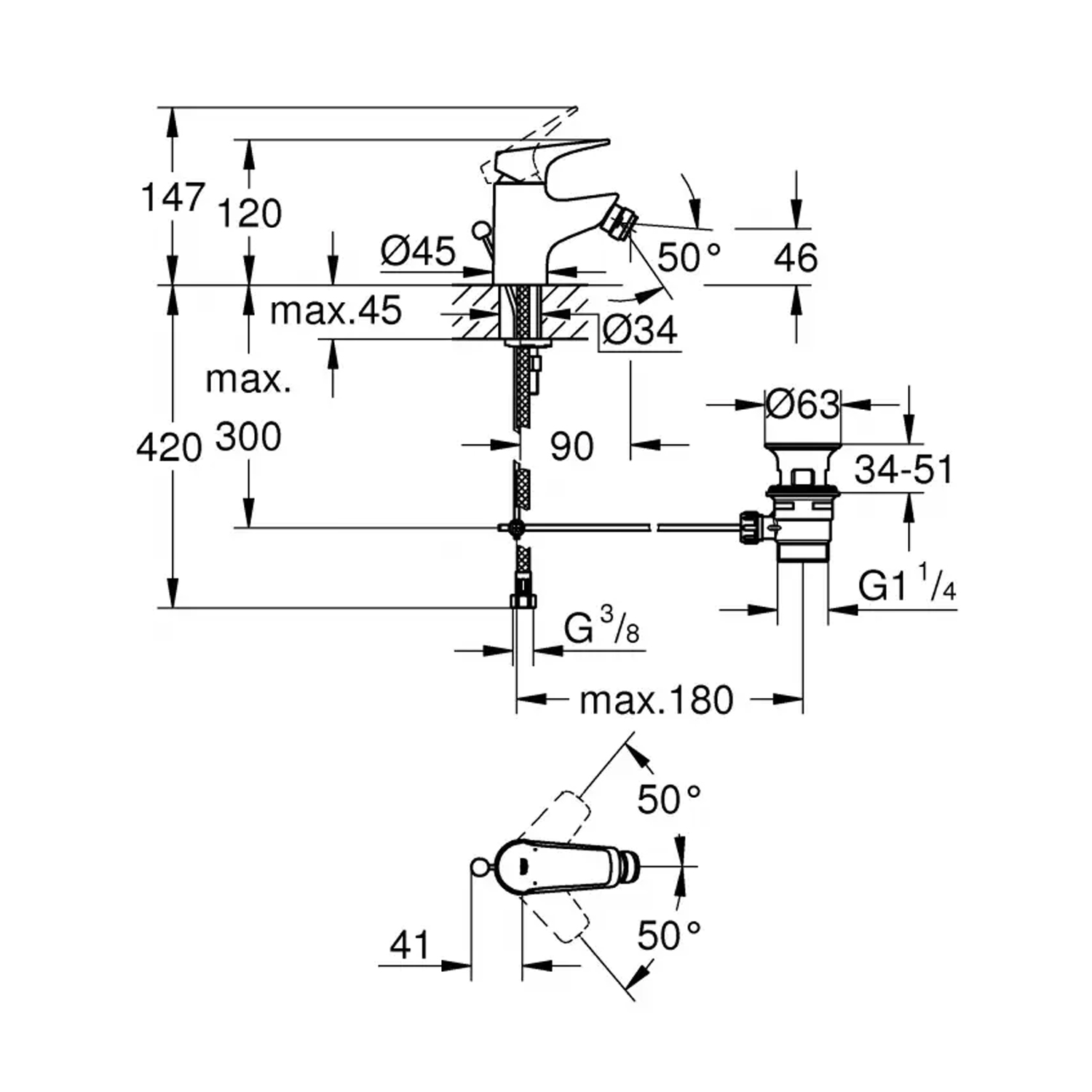 Аэратор с технологией GROHE Water Saving ограничивает расход воды до 5,7 л/мин без потери комфорта. Шаровой шарнир обеспечивает удобное направление струи, а комплект донного клапана 1 1/4" уже входит в комплект поставки. Гибкие подводящие шланги упрощают подключение к водопроводу.