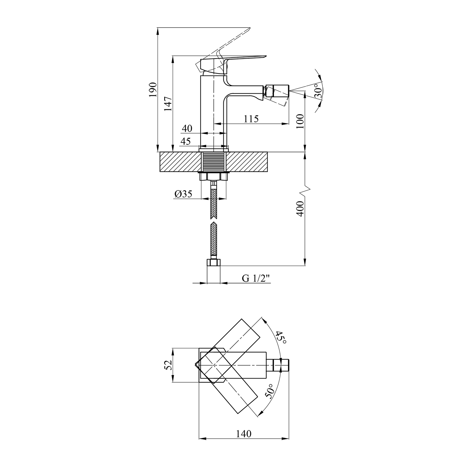 Опис Змішувач для біде Kroner KRP Harz - C020 код товару CV023614