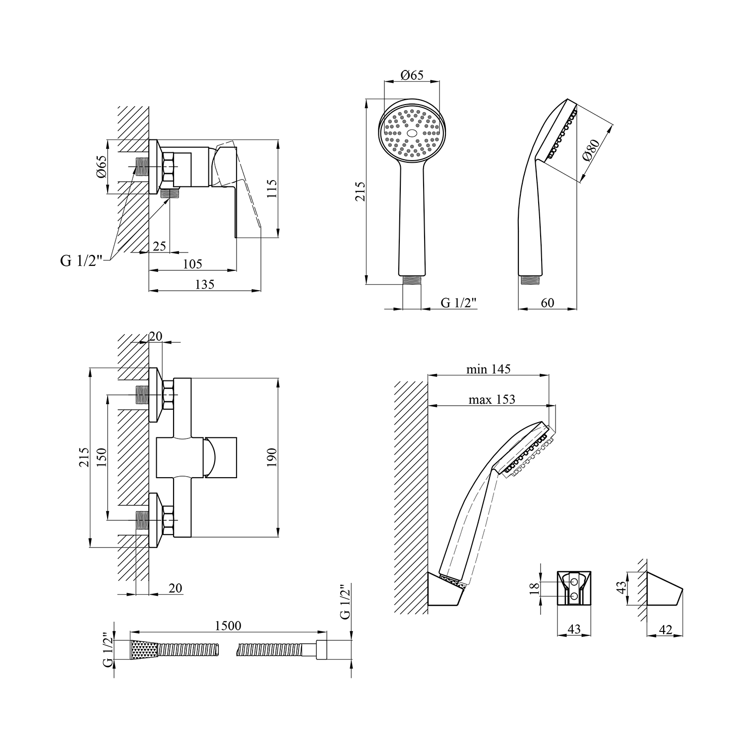 Опис Змішувач для душа Kroner KRM Main - C050 код товару CV018618