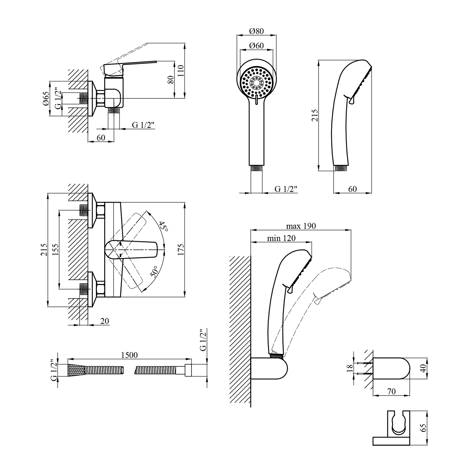 Опис Змішувач для душа Kroner KRP Brocken - C050 код товару CV023596