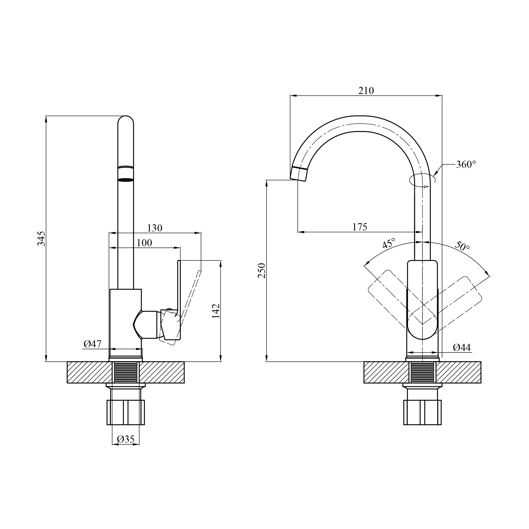 Опис Смеситель для кухни Agua Merida-C030 код товару CV035429