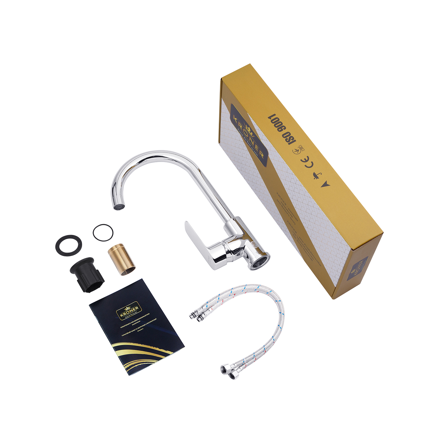 Змішувач Kroner KRM Main C030 - це поєднання елегантності та функціональності. Латунний корпус, хромоване покриття, що блищить, і сучасний дизайн. Легке управління одноважільним механізмом. Високий виливач забезпечує зручність при митті посуду. Керамічний картридж гарантує довговічність. Витрата води - оптимальна, без зайвих витрат. Ідеальний вибір для будь-якої кухні. Простий монтаж, стильний вигляд, надійність. Змішувач, який підкреслить вашу кухню.