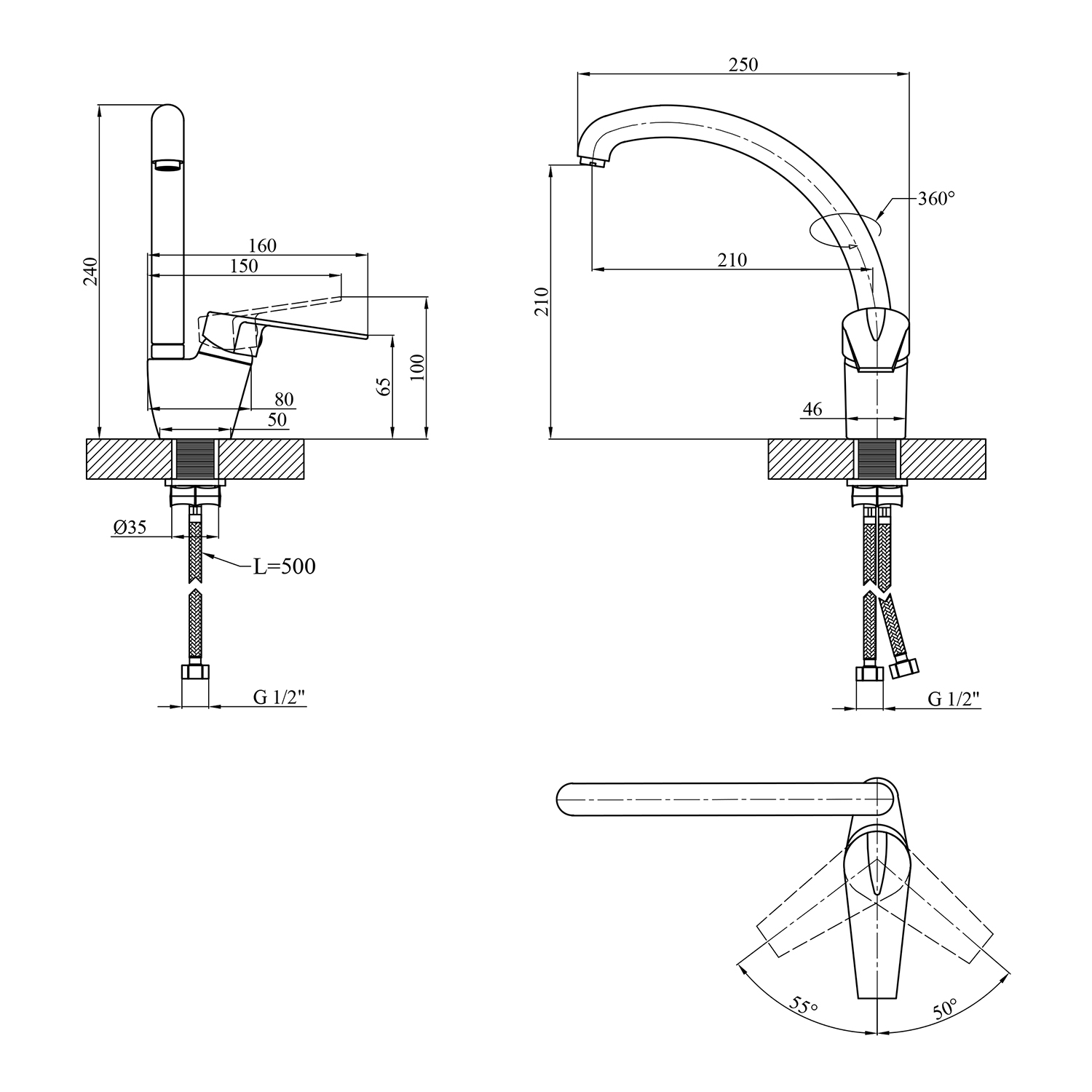 Легкість у використанні. Поворотний вилив. Зручний важіль. Вода завжди під контролем. Простий монтаж. Відмінна якість за доступною ціною.