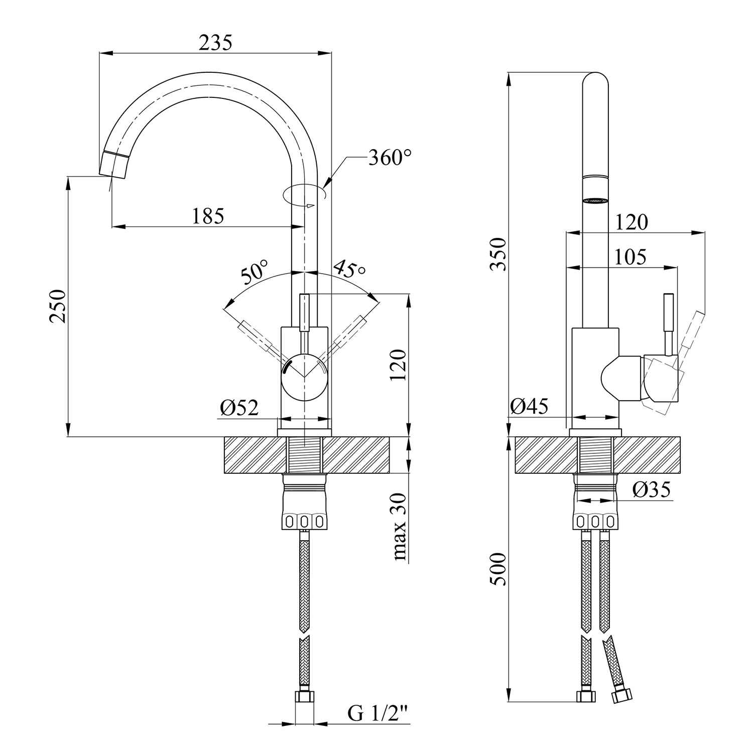 Опис Змішувач для кухні Kroner KRP Edelstahl Klassisch - ESG035 код товару CV023000