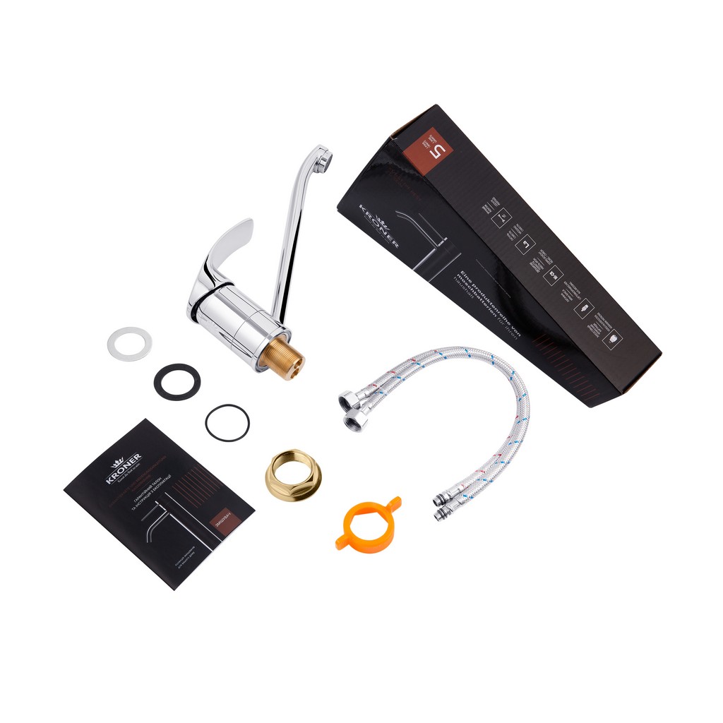 Цей змішувач - справжня знахідка для вашої кухні. Легкий у використанні, стильний, зручний. Вода тече, як ріка, а ви насолоджуєтеся кожним моментом. Хромоване покриття - це не лише краса, а й захист. Латунь - надійність, перевірена часом. Висота - ідеальна для будь-якої раковини. Витрата води - оптимальна, економія в кожному літрі. Керамічний картридж - довговічність, безшумність. Монтаж простий, як два пальці об асфальт. Kroner KRP Konstante C030 - ваш новий кухонний партнер!