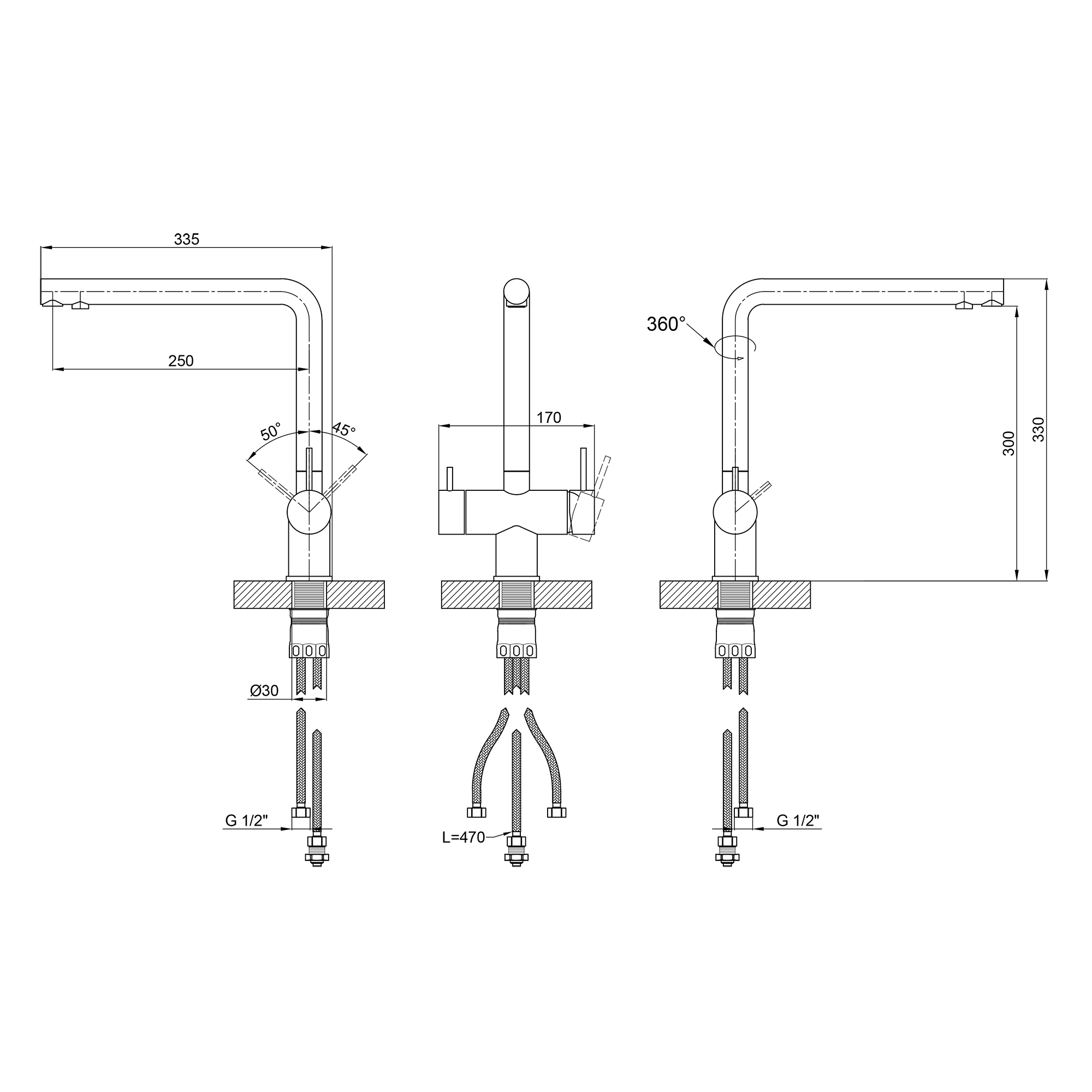 Характеристики Змішувач для кухні Lidz Aria 24F-SFS, F-образний з підключенням фільтрованої води (k35) код товару SD00049482