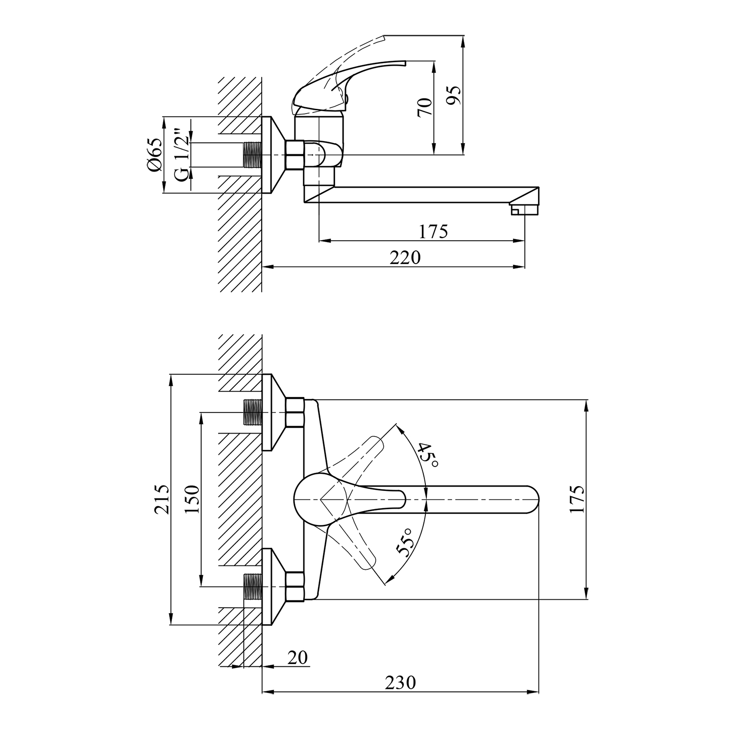 Опис Змішувач для кухні настінний Agua Leon - C040 код товару CV014923