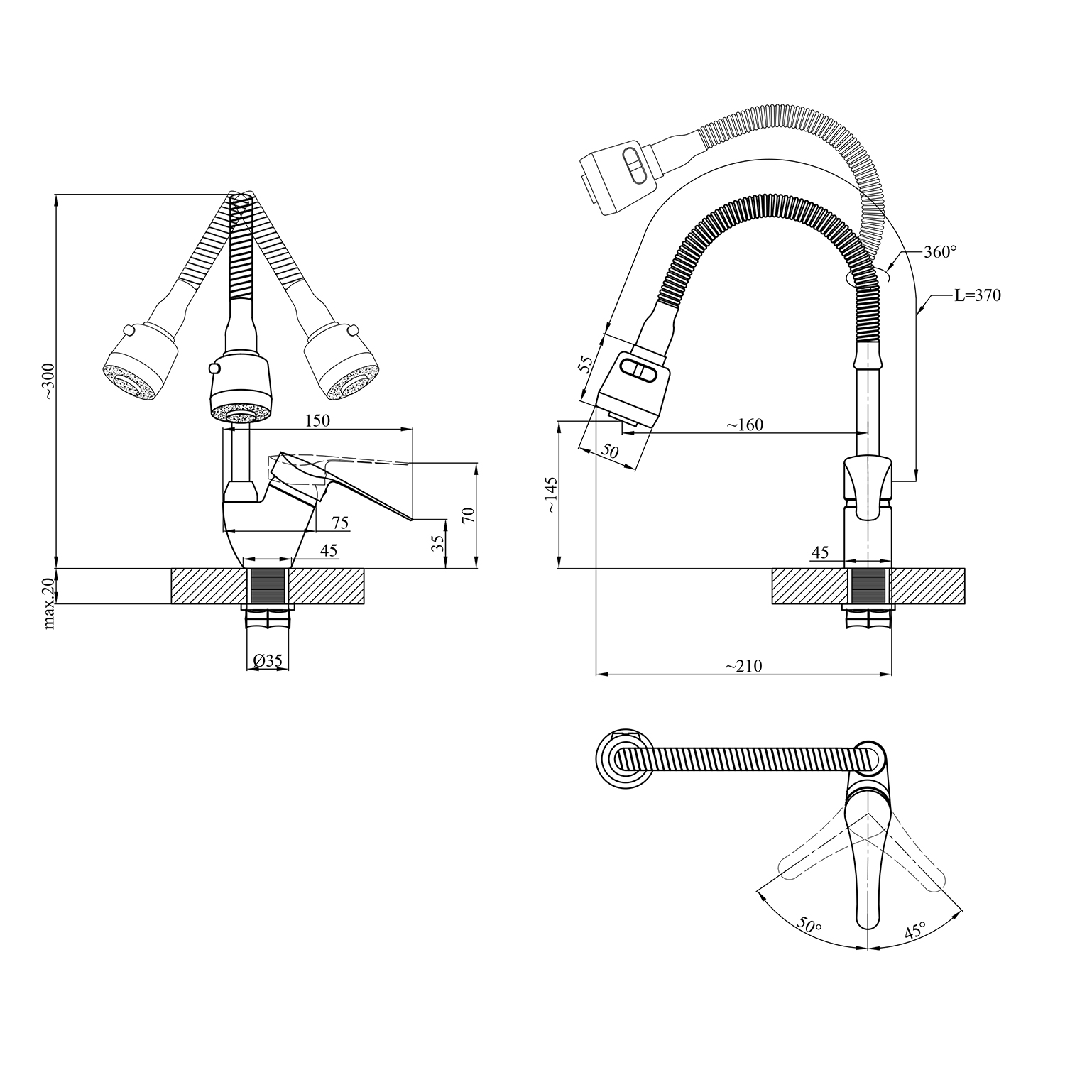 Характеристики Змішувач для кухні з гнучким виливом Agua Sevilla - C039 код товару CV022345