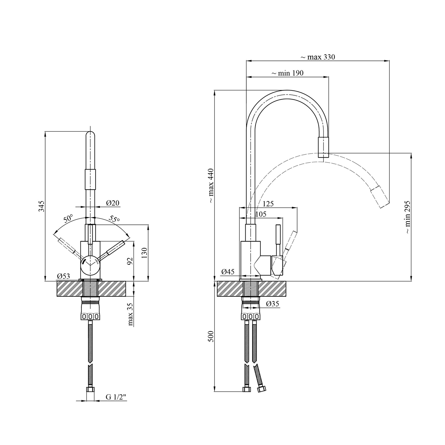 Опис Змішувач для кухні з гнучким виливом Kroner KRP Edelstahl Klassisch - ESG035GRA код товару CV024354