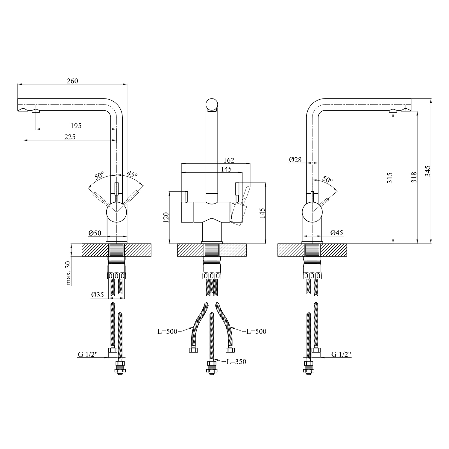 Опис Змішувач для кухні з підключенням до фільтра Kroner KRP Edelstahl Klassisch - ESG03811 код товару CV027932
