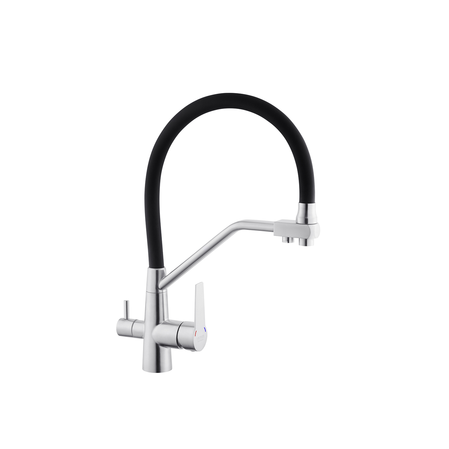 Легкість у використанні, стильний дизайн, ідеально підходить для сучасних кухонь. Змішувач має зручний важіль, що дозволяє точно регулювати температуру води. Підключення до фільтра забезпечує чисту воду без домішок.