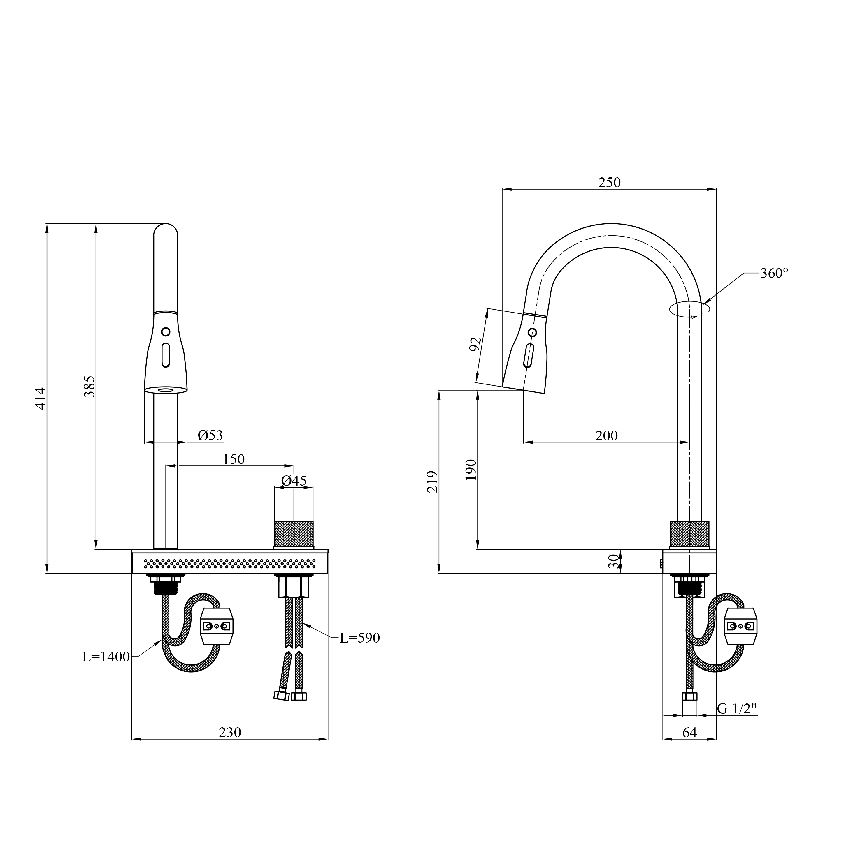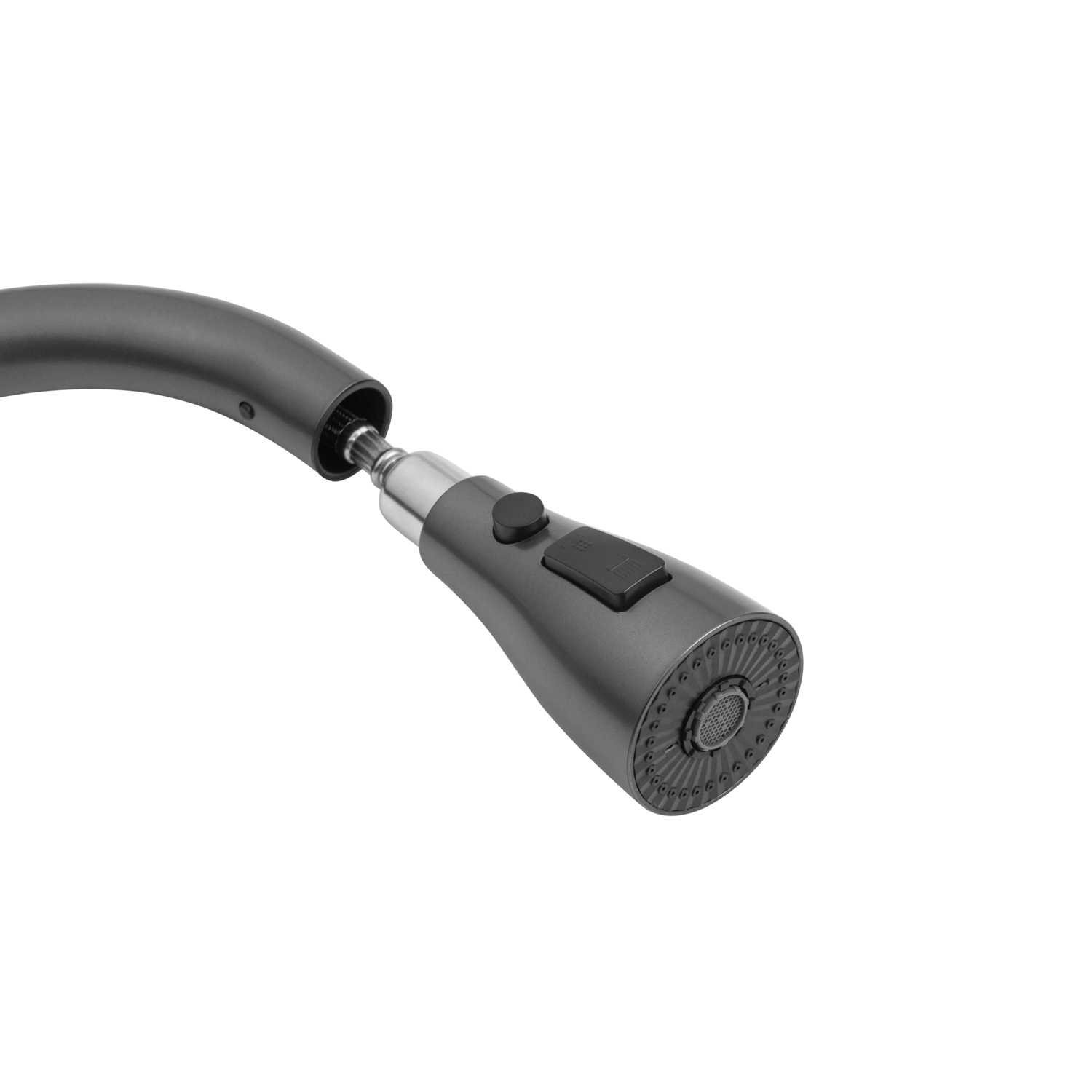 Смеситель изготовлен из нержавеющей стали с отделкой brushed black, которая обеспечивает премиальный вид, повышенную стойкость к царапинам и простоту ухода. Высокое, поворотное и выдвижное гибкое излияние делает работу на кухне максимально удобной — от мытья больших кастрюль до быстрого ополаскивания продуктов.