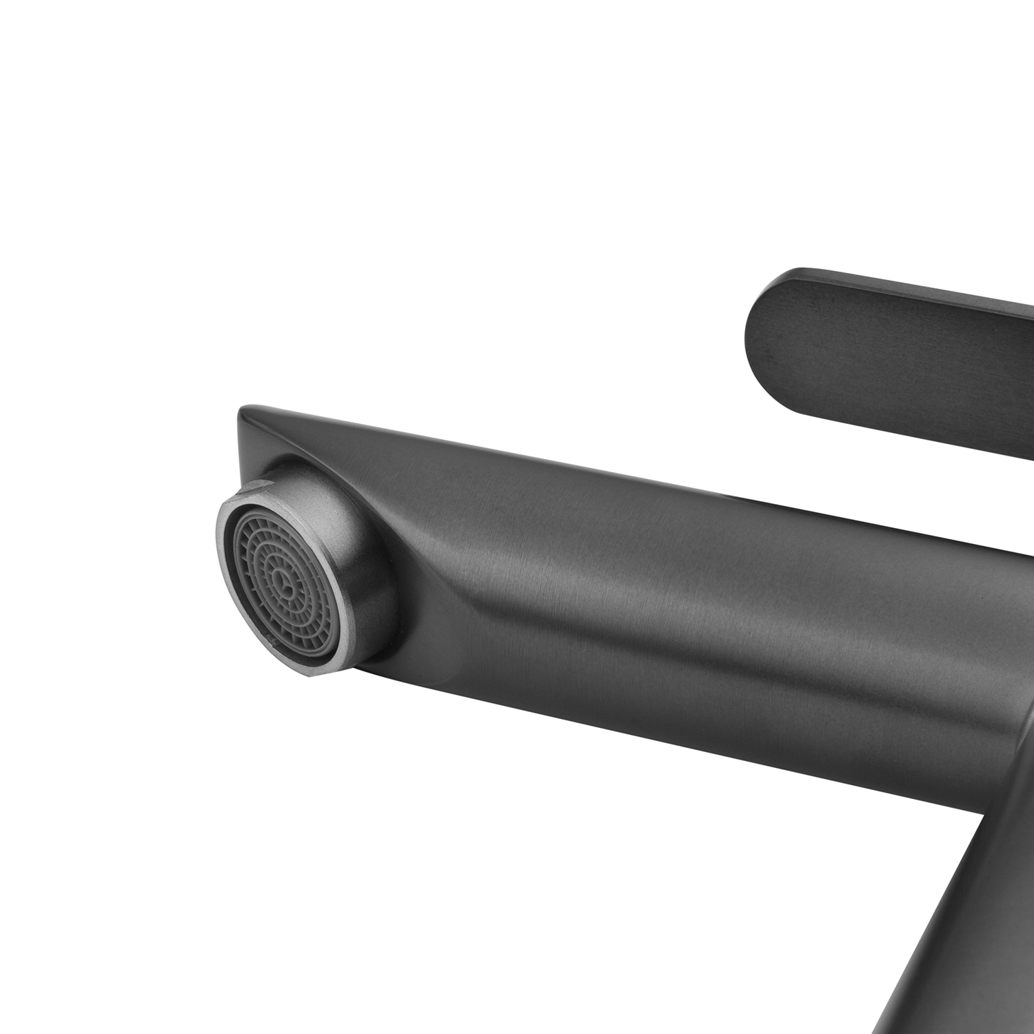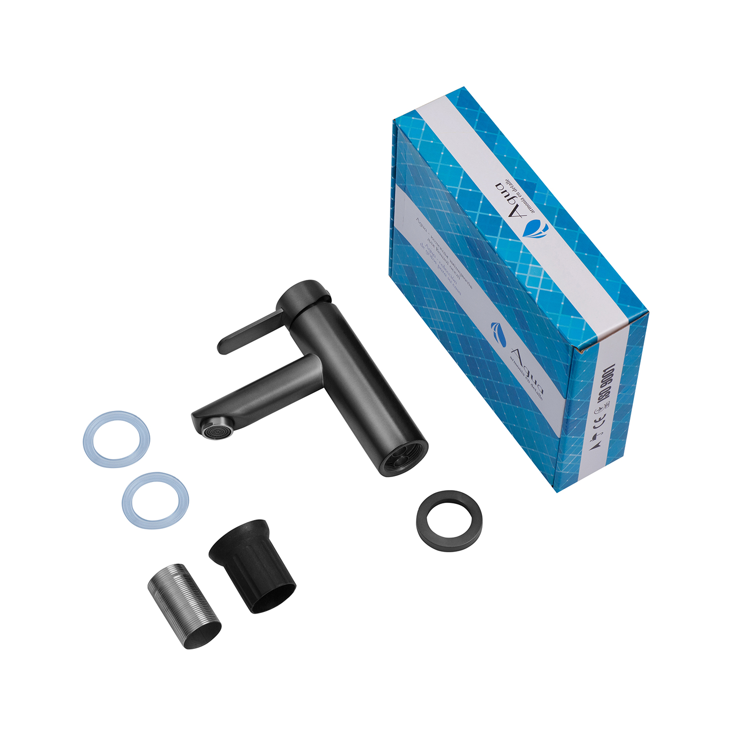 Agua Elposo - INOX010AM – стильный смеситель для раковины в современном графитовом цвете, придающий интерьеру изысканный вид. Изготовлен из нержавеющей пищевой стали SUS 304, он сочетает эстетику, гигиеничность и долговечность.