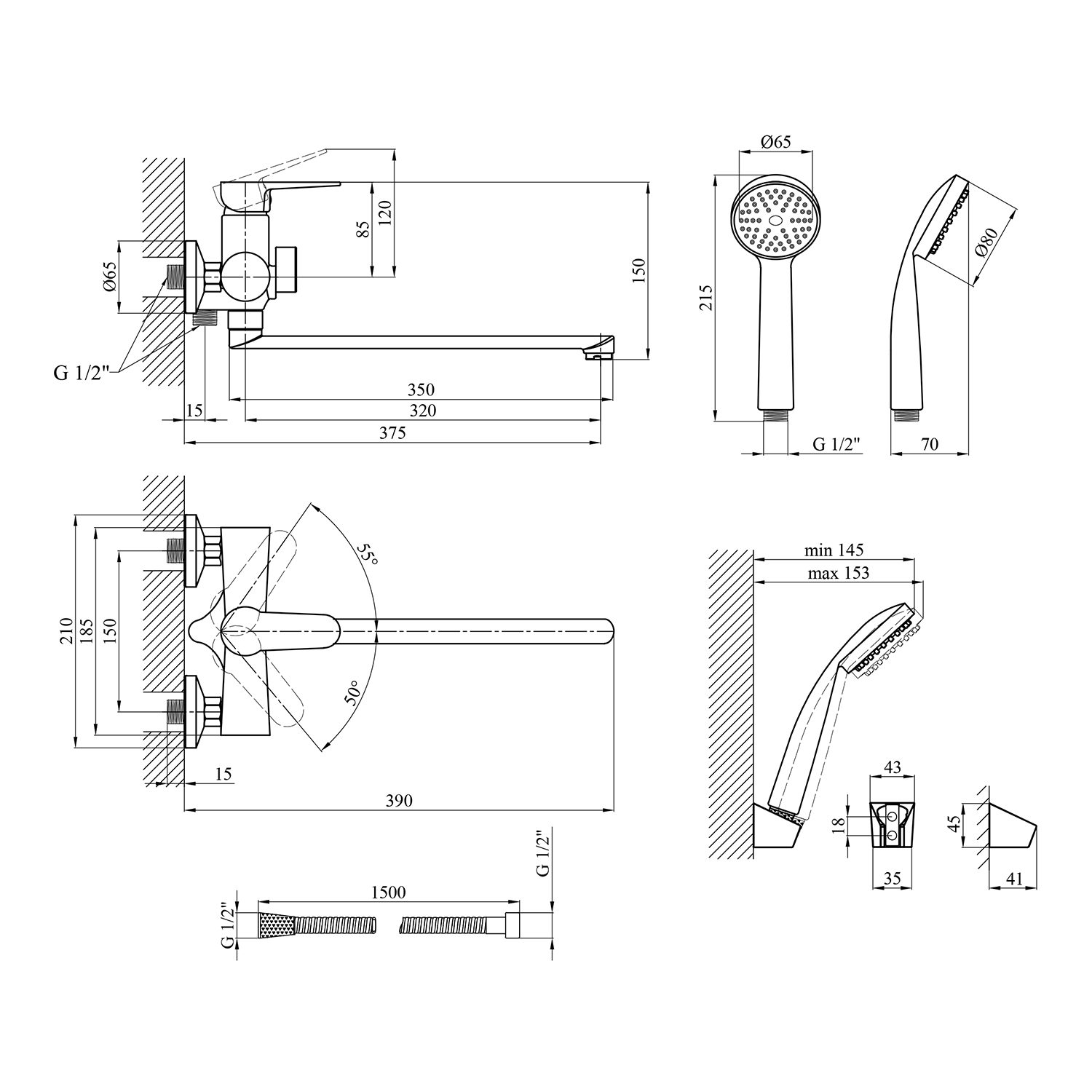 Опис Змішувач для ванни Kroner KRM Elbe - C070 код товару CV014921