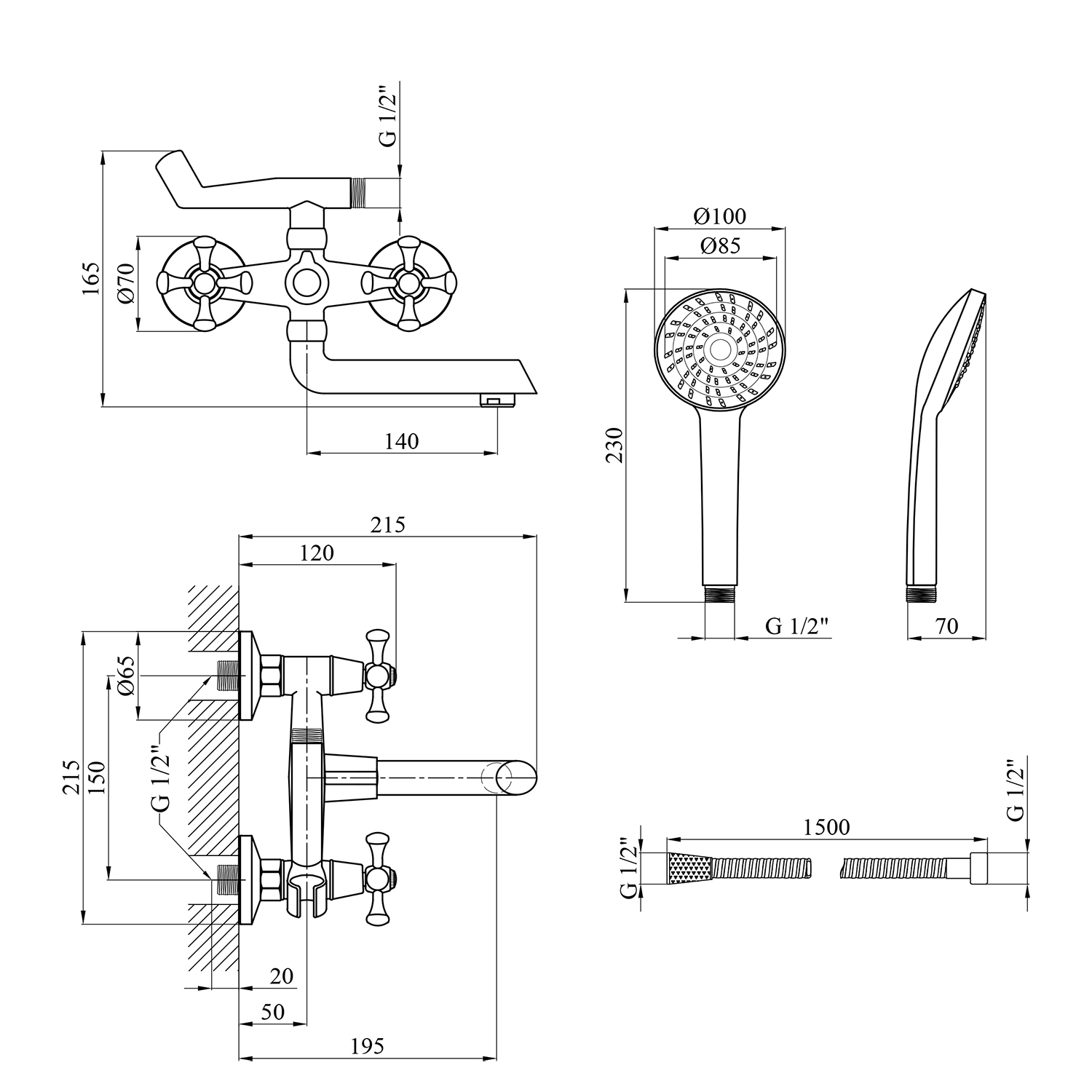 - Висота: 150 мм