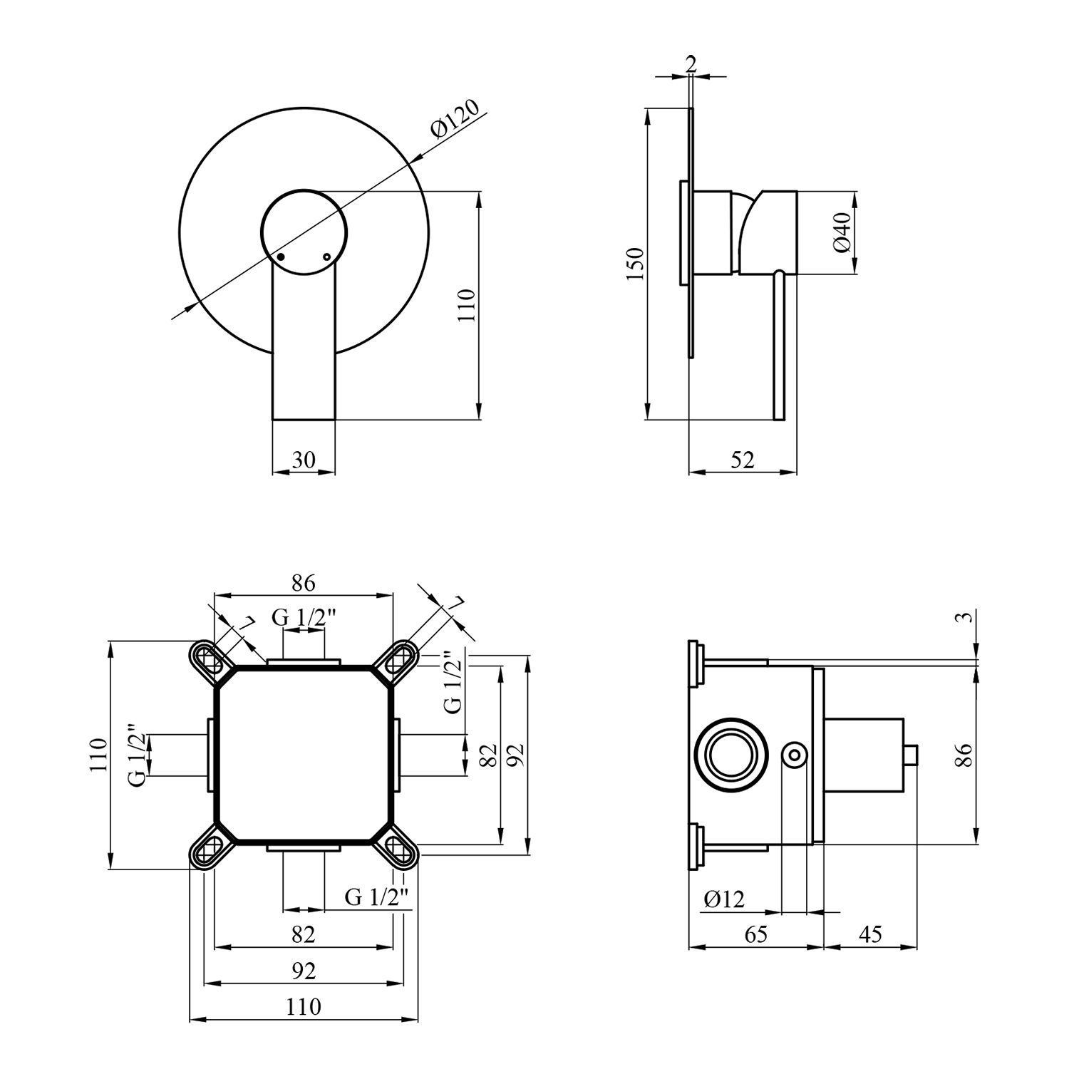 Опис Змішувач прихованого монтажу Kroner KRP Basis - C080 код товару CV024299
