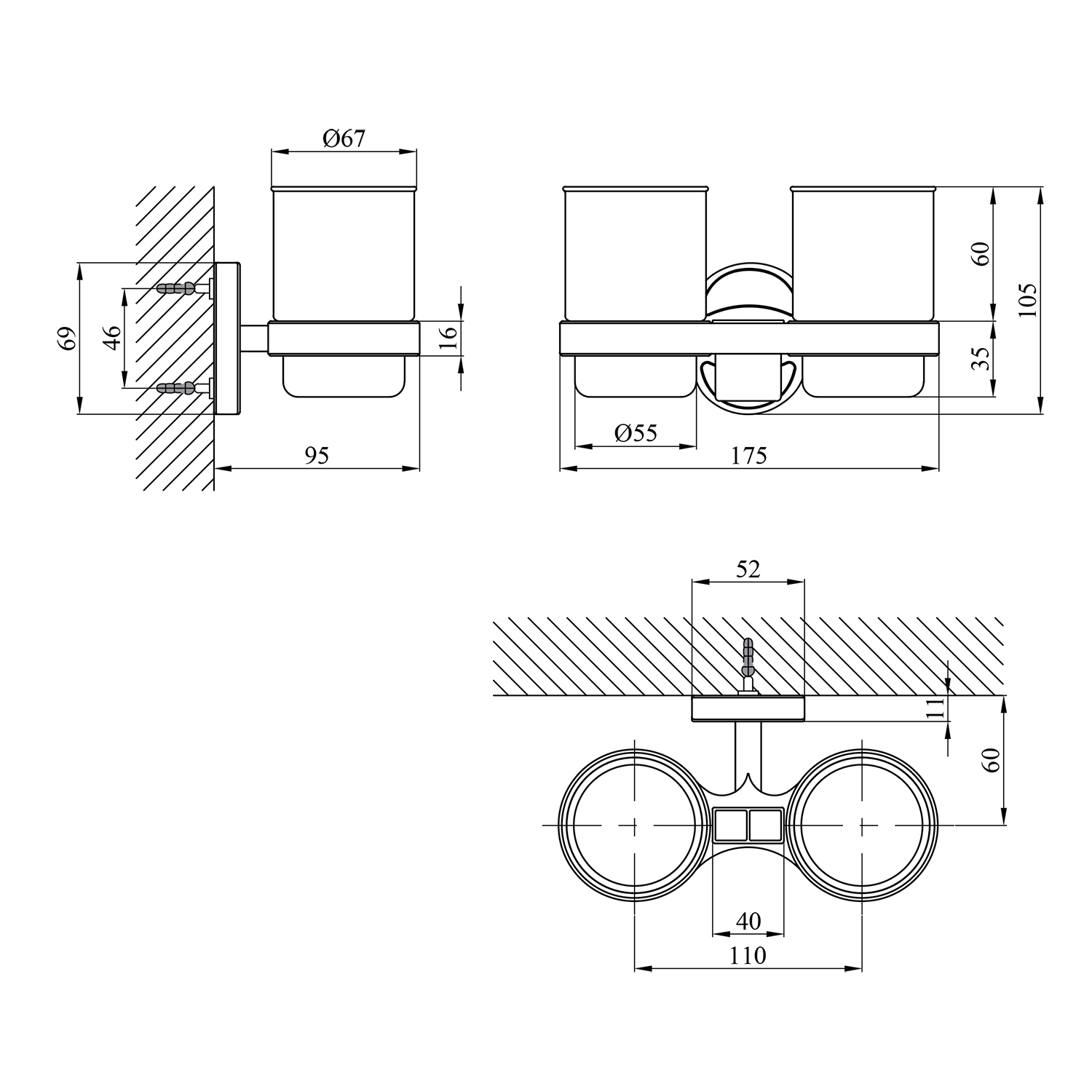 Подвійний стакан для ванної кімнати Kroner KRM Elbe з тримачем