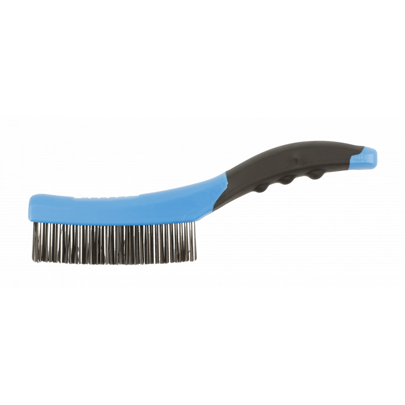 Щітка призначена для видалення іржі, фарби, лаку та складних забруднень, а також для очищення зварних швів та різьблення. Щітка виготовлена із твердого сталевого дроту, міцно закріпленого у пластиковому корпусі. Рукоятка має профільовану форму, що полегшує утримання інструменту та підвищує ефективність роботи.