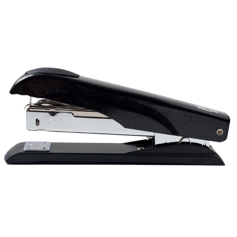 Металевий степлер BUROMAX підкреслить індивідуальність та стане незамінним атрибутом у роботі. Скріплює заявлену кількість аркушів (50 л. паперу 80 г/м²) і навіть більше. Корпус виготовлений із металу із пластиковою вставкою на важелі, яка перешкоджає ковзанню руки, що робить роботу з ним комфортною. Основа степлера – металева з пластиковою накладкою на підошві для запобігання пошкодженню робочої поверхні в процесі використання. Степлер підходить для щоденного використання як удома, так і в офісі.