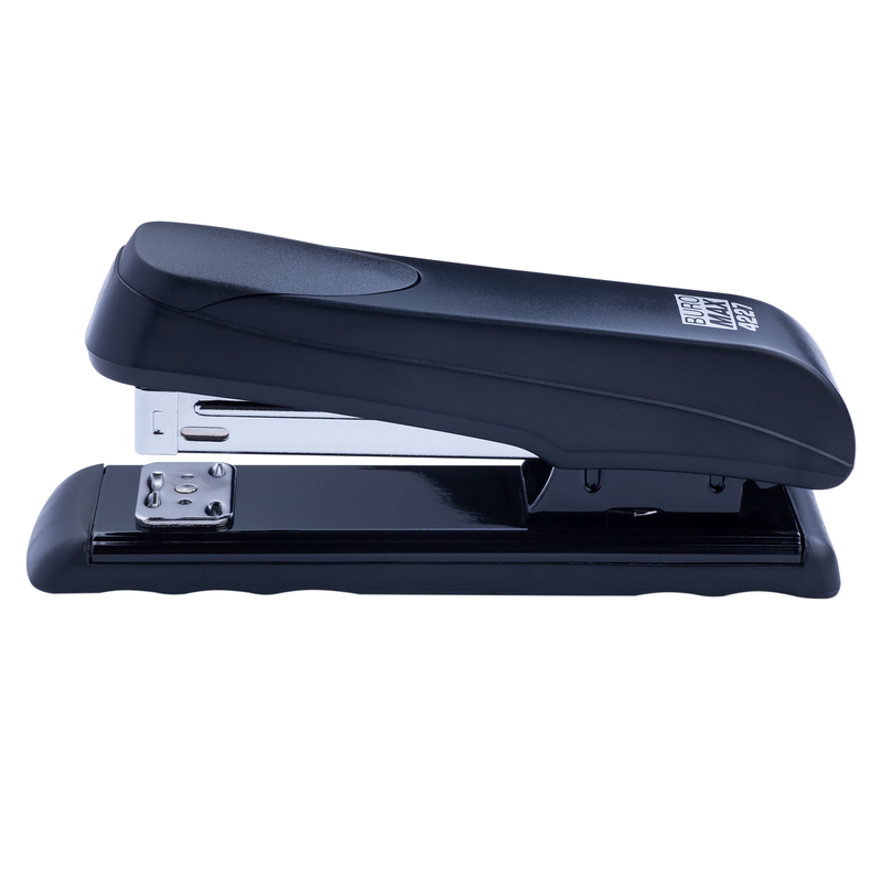 Пластиковий степлер BUROMAX із продуманим ергономічним дизайном підкреслить індивідуальність та стане незамінним атрибутом при роботі з документами. Скріплює заявлену кількість аркушів (20 л. паперу 80 г/м²) і навіть більше. Корпус виготовлений із пластику з додатковою пластиковою вставкою чорного кольору та металевою підошвою. Степлер підходить для щоденного використання як удома, так і в офісі.