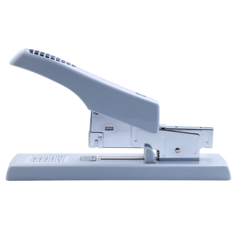 Степлер від BUROMAX посиленої потужності із продуманим дизайном стане незамінним атрибутом у роботі. Скріплює заявлену кількість аркушів (100 л. паперу 80 г/м²) і навіть більше. Особливість степлера - пересувна лінійка, яка регулює глибину завантаження паперу та довідкова таблиця відповідності номера скоби та кількості аркушів паперу, що скріплюється. Підошва виготовлена із металу з пластиковим важелем. Степлер підходить для щоденного використання як удома, так і в офісі.