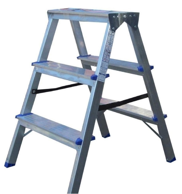 Двостороння міні-драбина призначена для домашнього використання. Завдяки антиковзаючим протекторам може використовуватися як на вулиці, так і в приміщенні..Призначення: використовується для різноманітних робіт, що вимагають підняття на певну висоту щодо підлоги. Також користується популярністю на невеликих складах, у виставкових залах і картинних галереях.